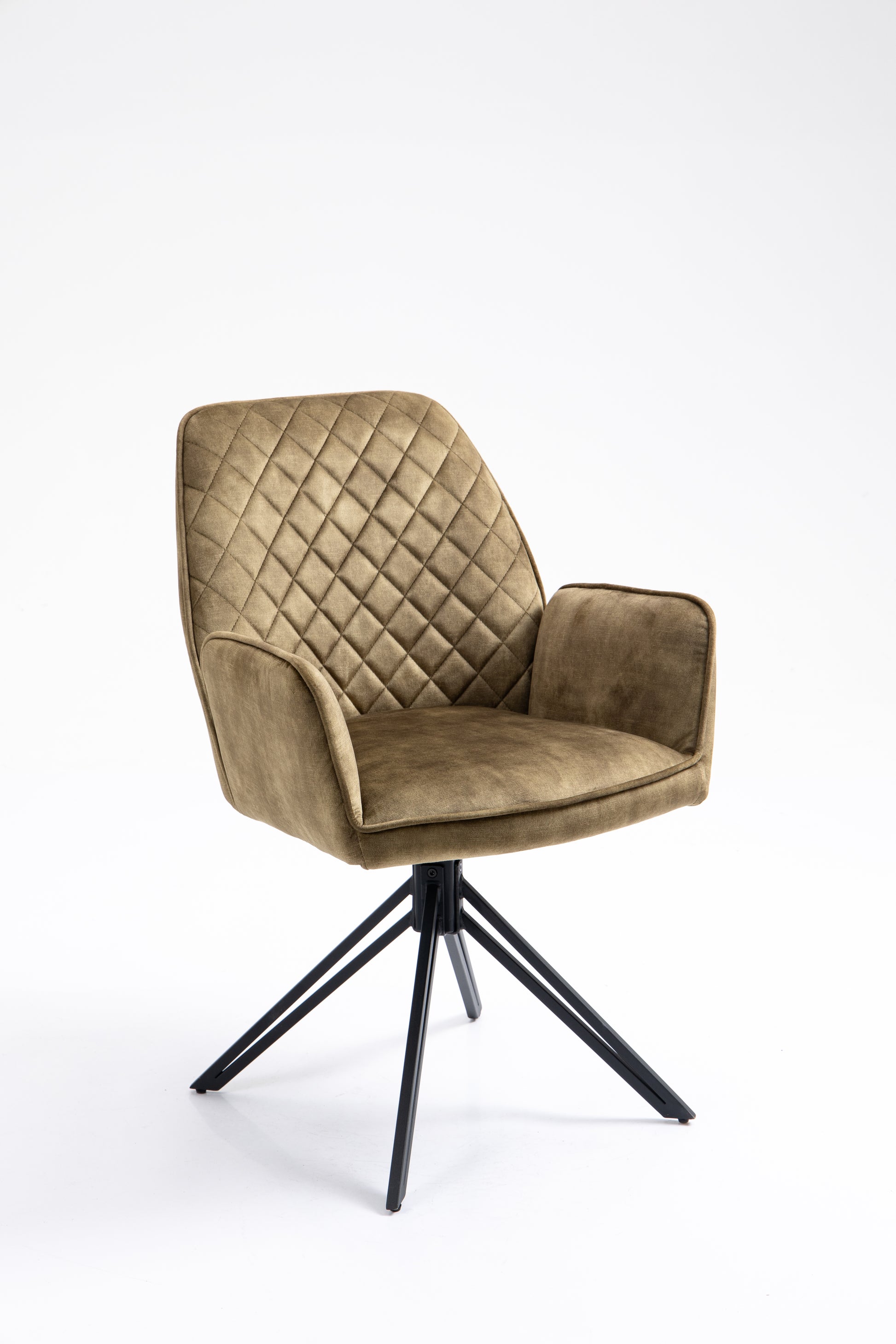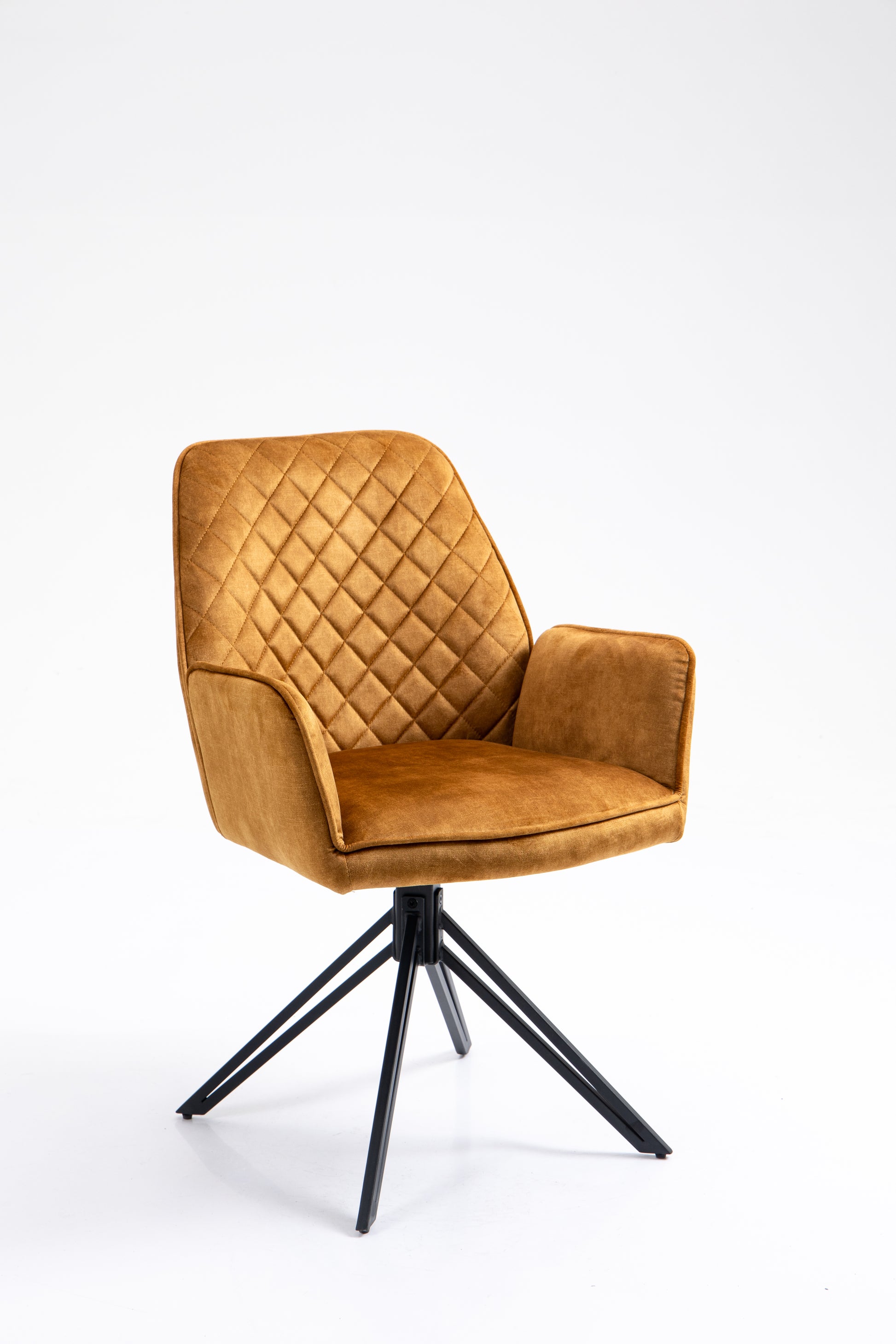 Eetkamerstoel William is een combinatie van stijl en comfort. Met zijn luxe velvet/velours stof en zwarte metalen poten voegt deze stoel een vleugje elegantie toe aan je eetkamer. De zitting van de stoel is draaibaar en draait automatisch terug.